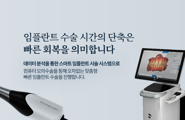 • 3D 구강 스캐너를 통해 치아를 디지털상으로 구현하여 더욱 정밀한 치료계획과 모의 수술 진행으로 빠르고 안전하게 식립이 가능합니다.