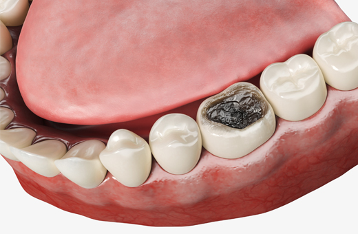 • 세균에 의해 치아의 표면이 녹아 생기는 치아 손상을 치과용 충전재료를 통해 기능을 회복시키는 치료